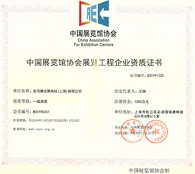 Квалификация класса I по инженерию корпоративных выставок, выданной Китайской ассоциацией выставочной индустрии.