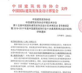 2018-2019 гг. Топ-10 влияющих по дизайну предприятий и организаций Китая в отраслях строительства и отделки.